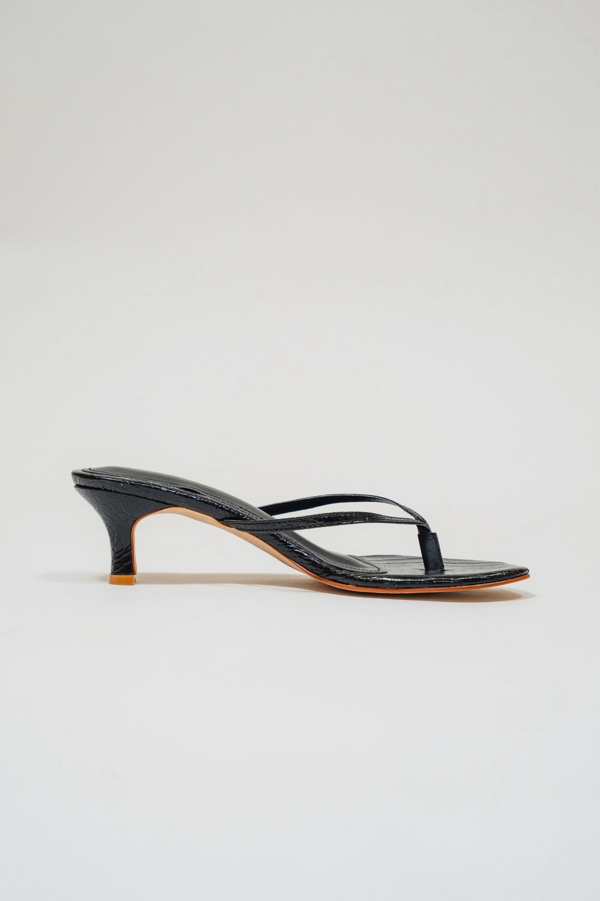 Introducing Natalie, the newest addition to our Out of Office Collection. This chic slip-on thong sandal reimagines a classic silhouette with a bold twist. Crafted from sophisticated croc leather, it effortlessly elevates any outfit. Ideal for both work and play, this kitten heel is a must-have in your shoe collection.