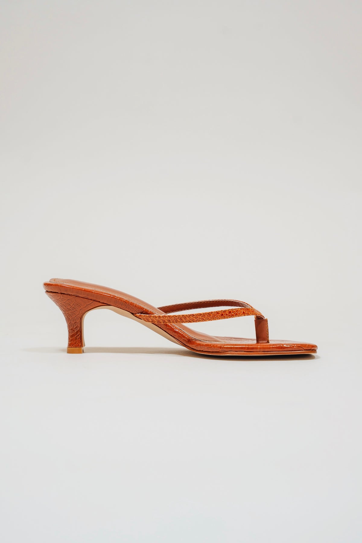 Introducing Natalie, the newest addition to our Out of Office Collection. This chic slip-on thong sandal reimagines a classic silhouette with a bold twist. Crafted from sophisticated croc leather, it effortlessly elevates any outfit. Ideal for both work and play, this kitten heel is a must-have in your shoe collection.