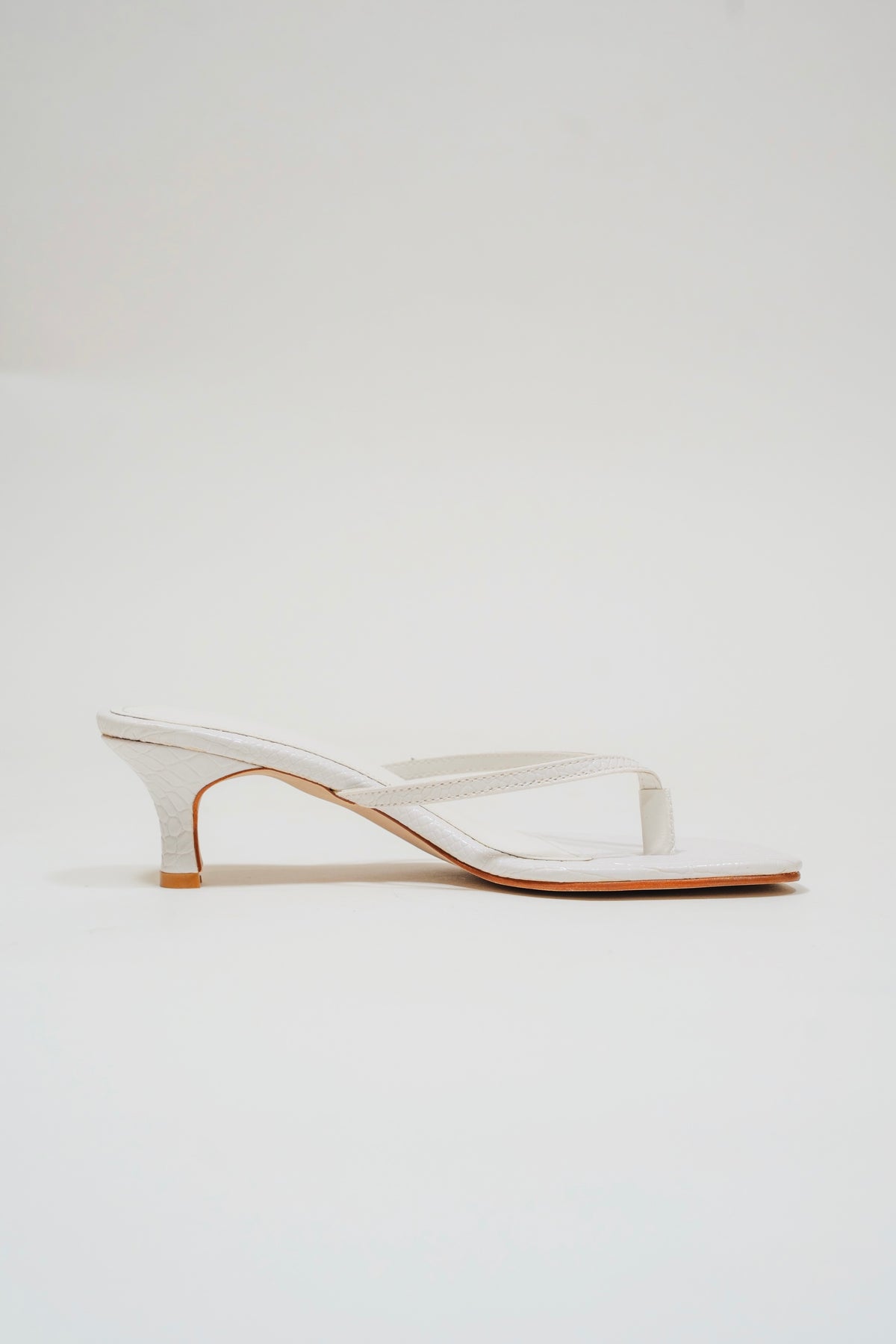 Introducing Natalie, the newest addition to our Out of Office Collection. This chic slip-on thong sandal reimagines a classic silhouette with a bold twist. Crafted from sophisticated croc leather, it effortlessly elevates any outfit. Ideal for both work and play, this kitten heel is a must-have in your shoe collection.