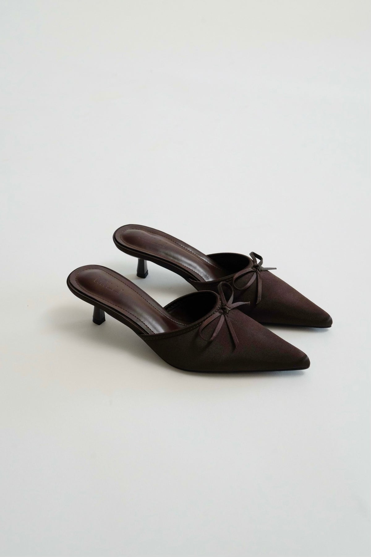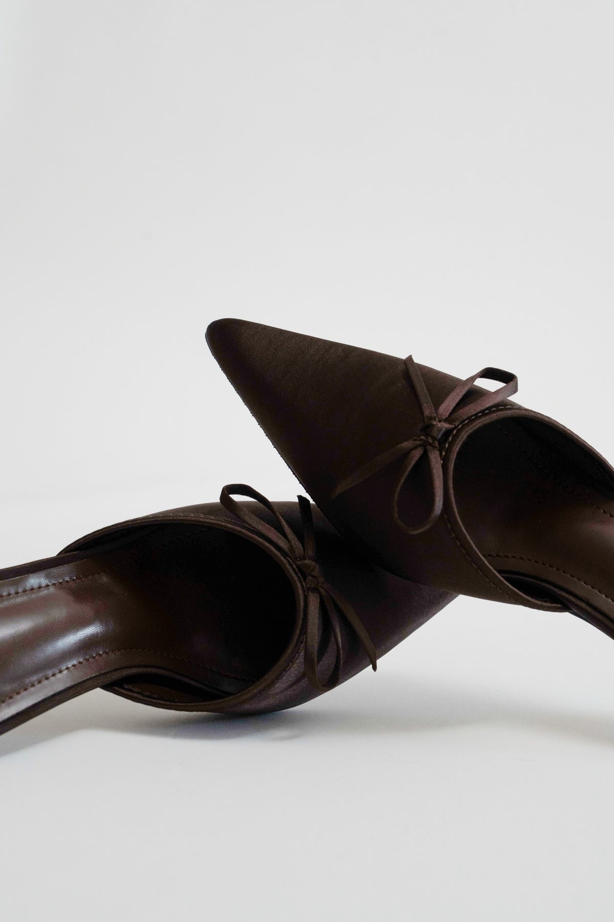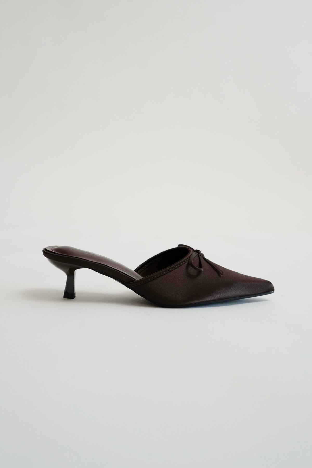Slip into the Cherie Kitten Heels - a nod to the softness and femininity of ballet. Crafted in soft satin, a flattering pointed toe silhouette and finished with a delicate bow. Graceful, versatile and endlessly wearable. This pair is made to move beautifully with you from day to night.